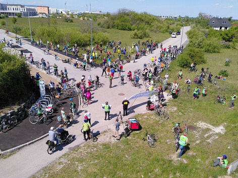 Bei der Rad-Demo in Wiener Neustadt waren schließlich knapp 300 TeilnehmerInnen mit dabei und setzten somit ein deutliches Zeichen für Klimaschutz und gegen die Umfahrungsstraße, welche die Auenlandschaft bedroht.
