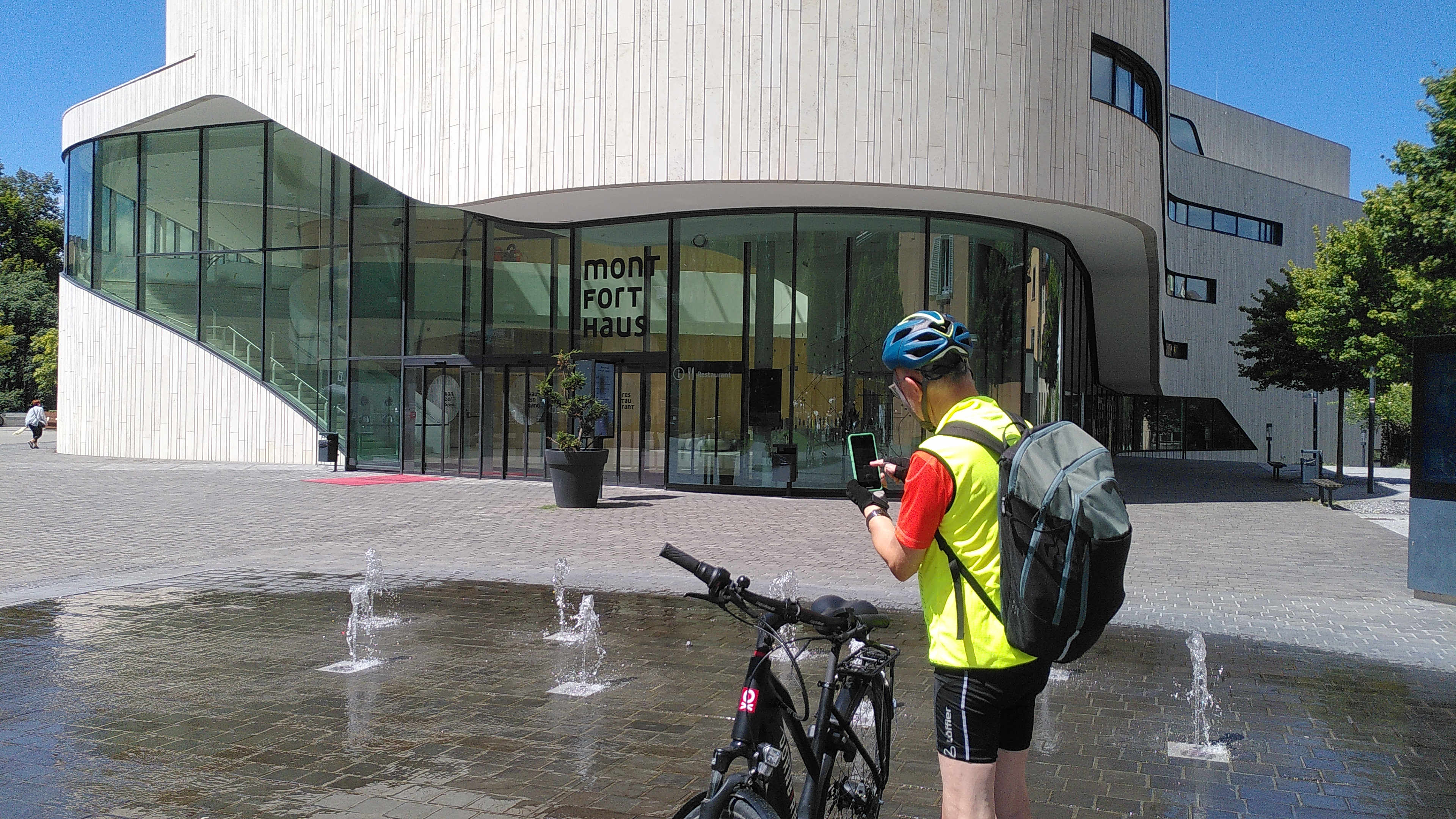 Teilnehmer Hans vor dem Montforthaus in Feldkirch; Foto: passathon